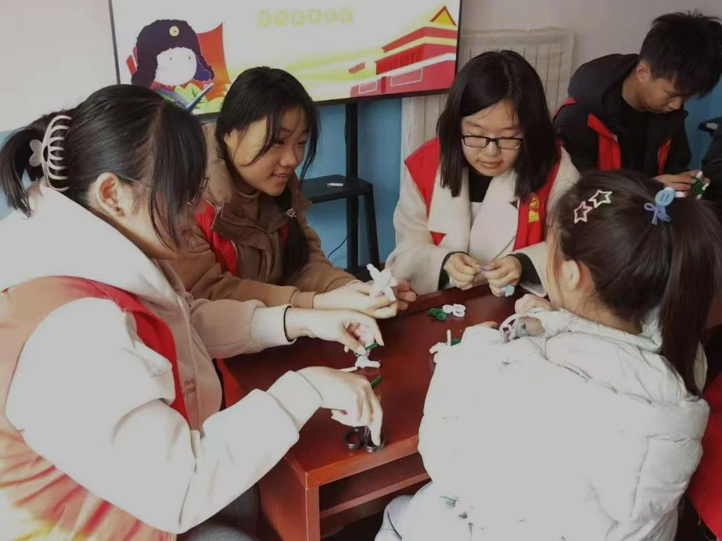 “扭扭棒‘感恩小花束’”环节同样精彩纷呈。孩子们在志愿者的指导下,分组创作出各种精美的扭扭棒作品,如小动物、花朵等。并将自己亲手制作的作品送给社区工作者,用实际行动表达了对他们的感激之情。