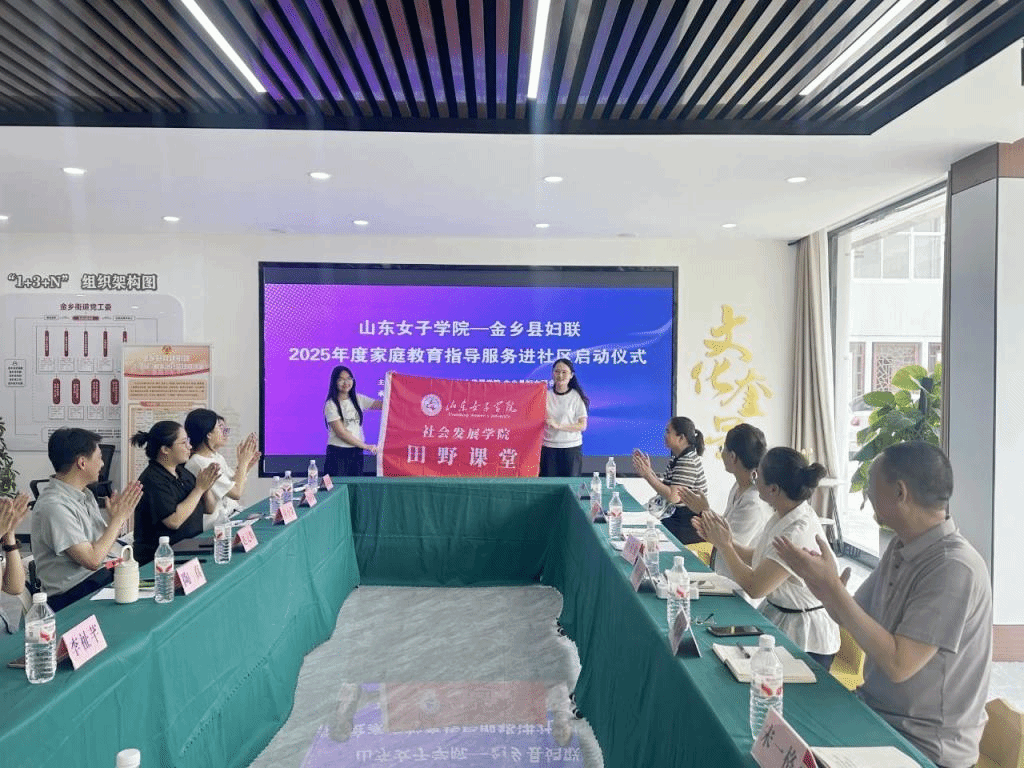 金乡县妇联党组书记、主席刘姗姗主持会议。刘珊珊主席对社会发展学院田野课堂的师生表示了欢迎,同时介绍了金乡县家庭教育工作整体情况和家庭教育指导服务进社区活动基本情况。社会发展学院社会工作教研室主任赵记辉介绍了学院田野课堂的要求,师生要以严谨的态度投入田野课堂,带队教师应充分发挥专业优势,推动理论紧密联系实际,引导学生在实践中发现问题、分析问题、解决问题。参加学生要做好计划、重视团队协作,圆满完成本次田野课堂。随后,金乡县妇联、金乡街道的相关领导为田野课堂实践队授旗。本期田野课堂以“家庭成长计划”为主题,采取实践、调研和服务的形式,在金乡县奎星社区和沙岭社区开展。