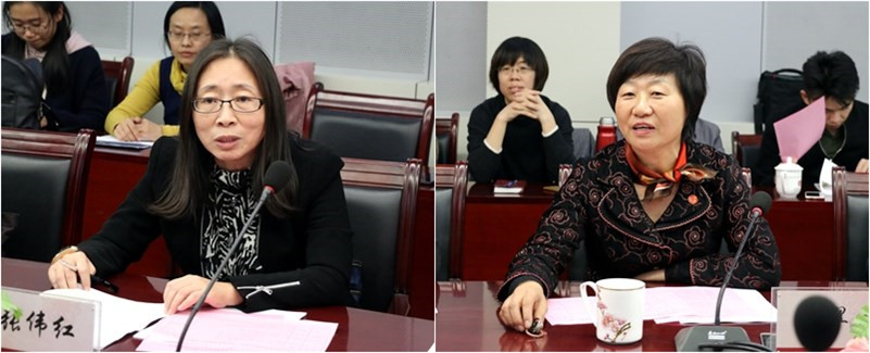 山东省人大内司委办公室副主任张明敏发言 山东省妇联家庭和儿童工作部部长盛淑慧发言