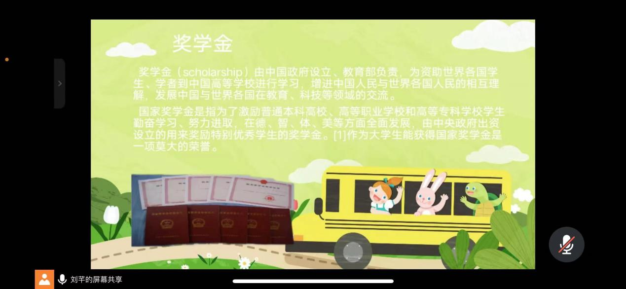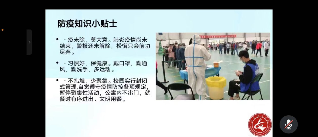 王晴晴老师为学生们讲解了学校的奖助贷补政策,以便于帮助因经济困难而无法上学或者上学困难的学生。王老师再次对疫情防控问题进行强调,要求做好疫情防控工作,对于因疫情原因隔离在家的学生进行严格把控,确保学校师生的健康安全,积极响应国家疫情防控的政策及要求。