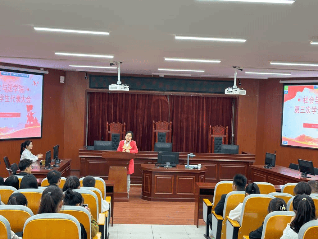 长风万里送秋雁,安中梧桐秋叶黄。为更好的服务学生、帮助学生,促进社会与法学院全体学生的全面发展,10月19日下午四时,社会与法学院第三届学生代表大会伴随着国歌拉开帷幕,社会与法学院团总支书记张扬、学生代表以及学生会主席团候选成员参加本次会议。
