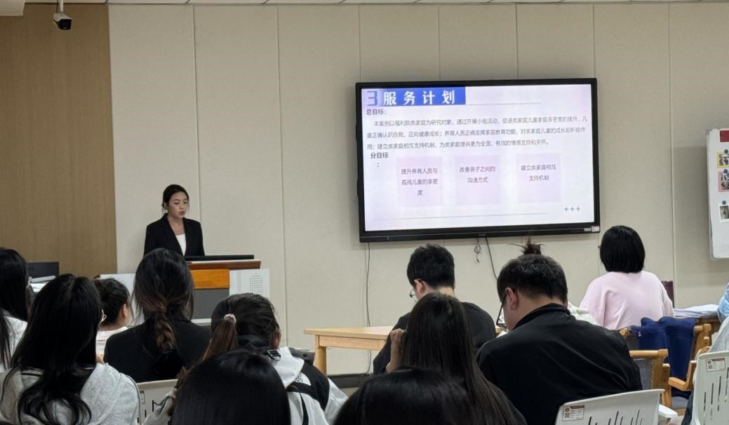 现场,各参赛队伍综合运用个案、小组、社区等社会工作方法,聚焦儿童社会工作服务、青少年社会工作服务、老年人社会工作服务、残疾人社会工作服务、家庭社会工作服务等多个领域,以PPT和视频相结合的形式进行案例展示和答辩。答辩环节中,参赛选手展现了扎实的专业素养、社工情怀和投入社会工作服务实践的良好精神风貌。评委老师就案例文本撰写质量及答辩情况进行点评,给出可行性修改建议,为后续案例的完善提供了指导意见。