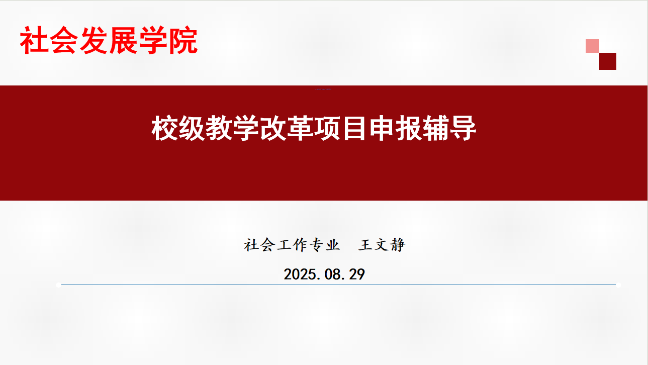 为进一步提升社会发展学院教师教学改革项目申报质量与立项成功率,激发广大教师投身教学改革的热情,推动教学改革创新,我院于8月29日通过线上会议的形式,成功举办了一场教学改革项目申报专题培训会。学院教师积极参与,共探教学改革新路径。