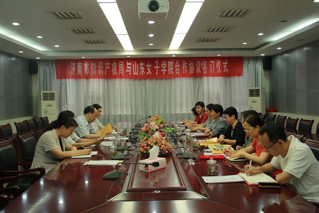 6月20日上午,山东女子学院与济南市知识产权局共建济南市知识产权人才培养基地座谈会暨合作协议签署仪式在学校第三会议室举行。济南市知识产权局局长李海波、院长范素华出席会议,学校教务处、招生就业处、社会与法学院负责人及相关专业教师参加会议。与会双方围绕合作建设知识产权人才培训基地等相关问题进行了深入的研讨。
