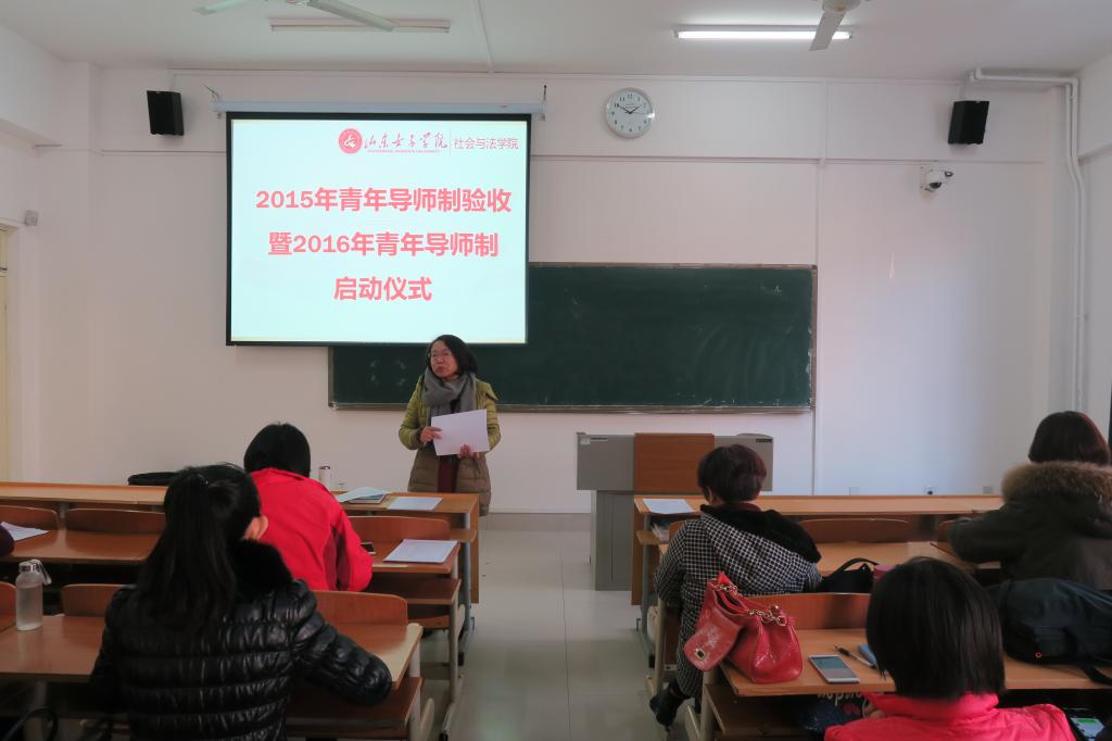 12月1日下午,社会与法学院2015年青年教师导师制验收汇报及2016年青年教师导师制启动仪式在博学楼108教室举行,2015年导师制验收的7名青年教师及其导师、11名2016年新进青年教师参加,由社会与法学院副院长闫小红主持。