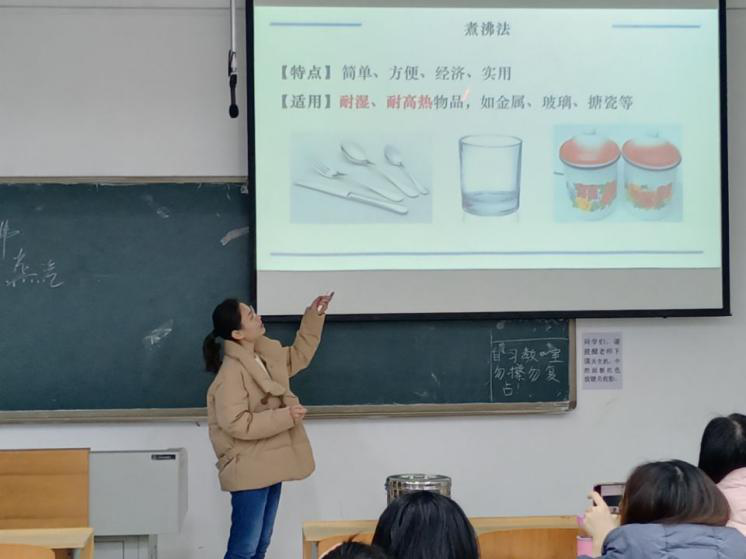 比赛伊始,王绍霞副院长宣布竞赛要求,于丽娜老师详细的介绍了社会工作方法的分类情况,王文文老师通过三位历史人物引出了课题。紧接着,左清艳老师引领回顾知识点,并引出了著作权专有权利性质的分析,李宏芳老师根据自身经历事件,讲解了幼儿认知发展的主要规律。随后,薛娇美老师讲了三个日常用品的消毒方法,类比了湿热和干热消毒的威力,诠解了学习热力消毒灭菌法的重要性。
