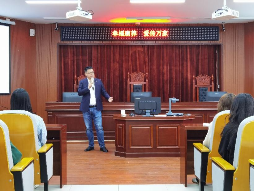 为促进康养行业生态发展,山东女子学院与山东绿地泉美好生活集团合作联合育人,共建产业学院,为康养行业的发展奠定坚实的人才基础。2021年9月,第一批健康服务与管理校企合作班正式入学,为了尽快让学生了解企业文化、企业业务板块等,10月16号上午8点30分,绿地幸福家综合服务有限公司总经理魏涛、综管部主任崔健来到山东女子学院,为2021级健康服务与管理专业学生进行企业宣讲。