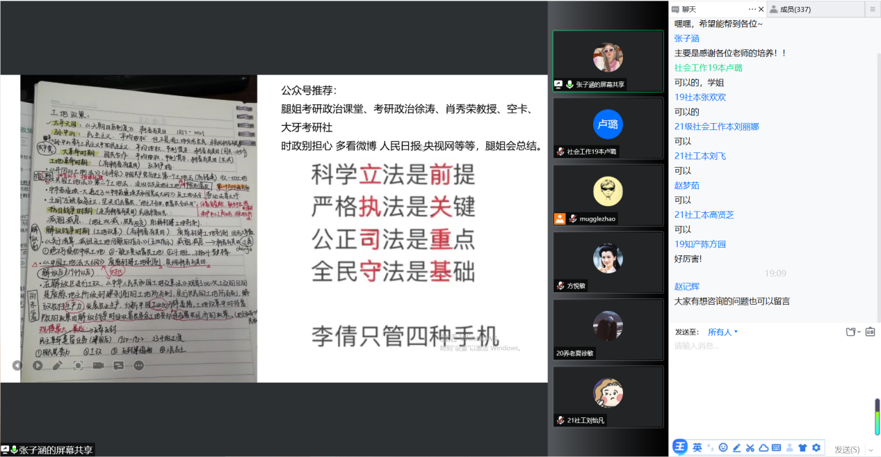 为了进一步提升社会工作专业学生对专业研究生考试的认识,2022年4月6日晚,社会工作专业在腾讯会议举行“云学堂”之考研分享交流会。本次会议由社会工作教研室主任赵记辉主持,邀请2018级社会工作本科生张子涵作为分享人,社会工作专业100余名学生以及其他专业的学生参加。