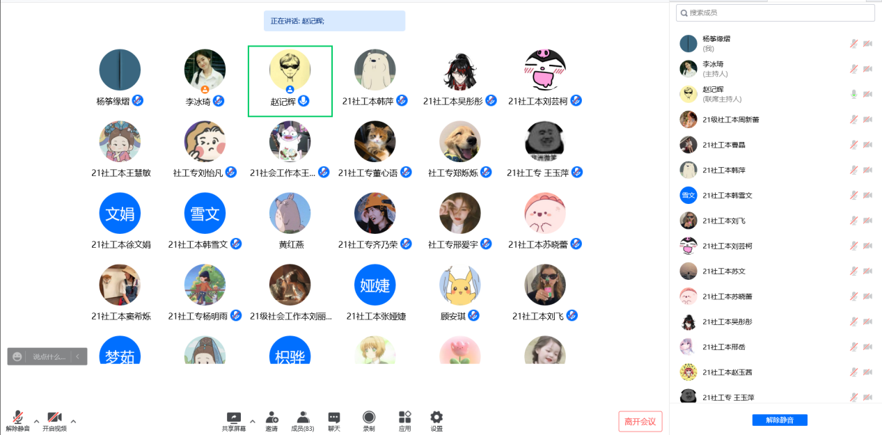 会议伊始,赵记辉老师简要说明了社会工作“云学堂”的计划,督促学生应该开拓视野、不断进步、积极面对大学生活,引导学生思考大学期间应树立的目标。紧接着,2020级社会工作本科班李冰琦同学从目标与责任、情绪与抗压、正念与向上等方面分享了大学生活的经验。在目标与责任方面,李冰琦同学强调要有目标有想法,多尝试多挑战;在情绪与抗压方面,要化压力为动力,做情绪的主人。随后,李冰琦同学建议要多读书、读好书、好读书,更多的丰富自己的学识。最后,赵记辉老师对优秀学生分享会的内容进行总结,参加会议的学生们表示该会议对未来大学的生活目标具有指导作用。
