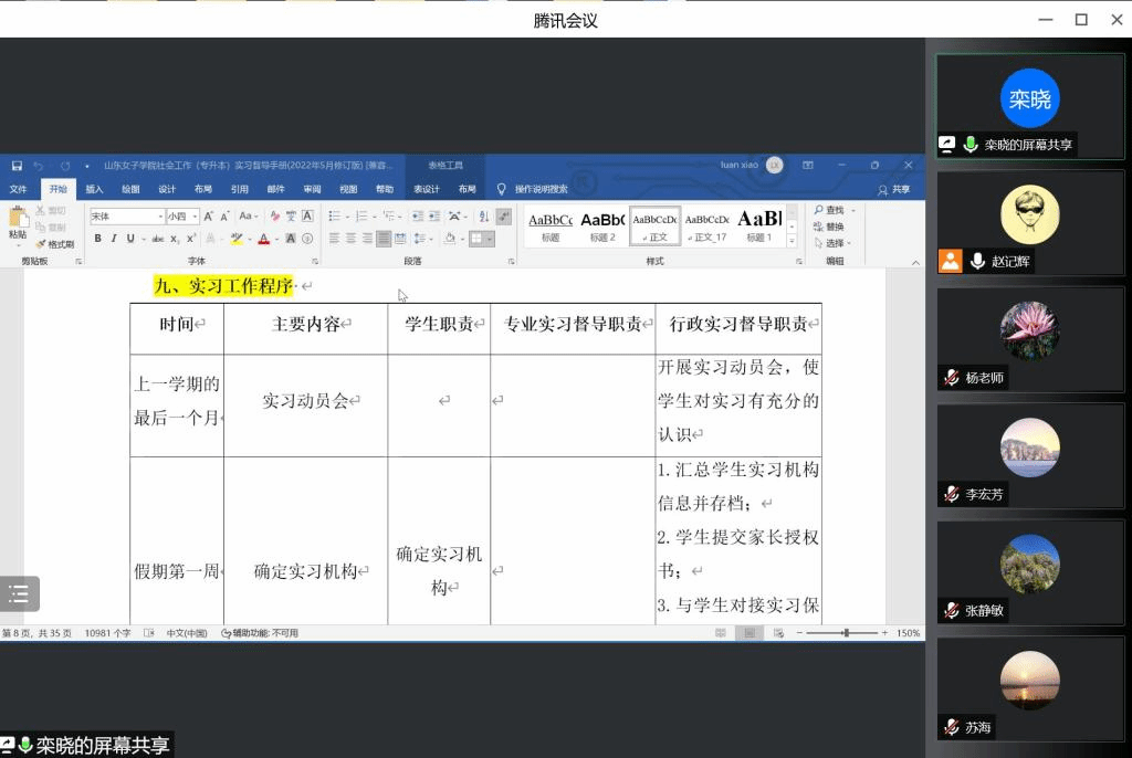为总结本学期教学工作,研究、部署暑期及下学年教学重点工作,全面提升教学质量和水平,2022年6月17日晚上7点,社会工作教研室召开了教学工作研讨会,教研室全体教师参加会议。