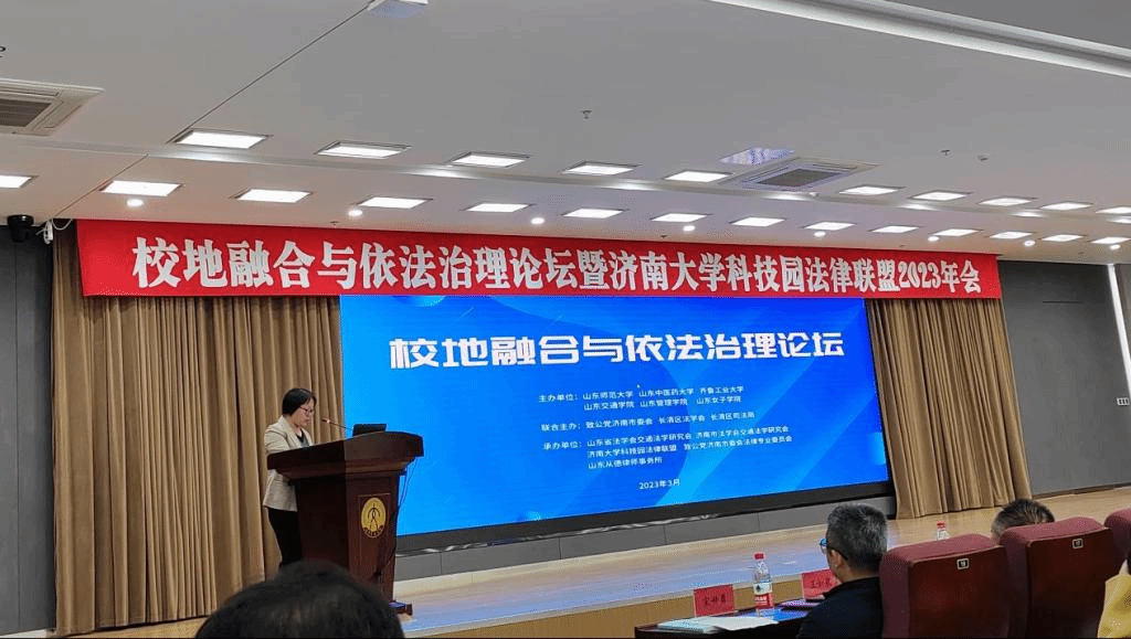3月11日,社会与法学院副院长王绍霞、青年教师卢建如应邀参加在济南召开的“校地融合与依法治理论坛暨济南大学科技园法律联盟2023年年会”。本次论坛主办单位为长清大学科技园六所具有法学学科专业的高校、致公党济南市委会、长清区法学会、长清区司法局、济南大学科技园法律联盟、山东从德律师事务所等。