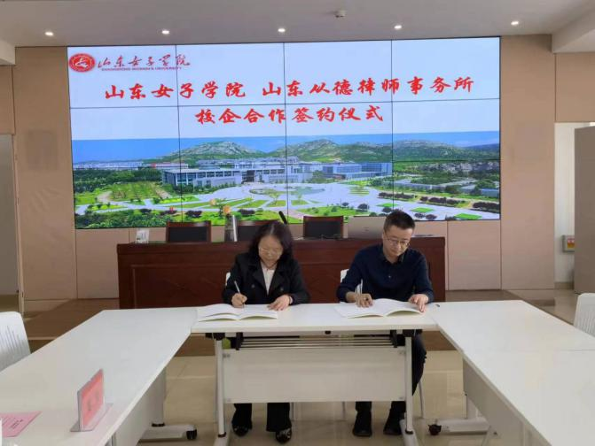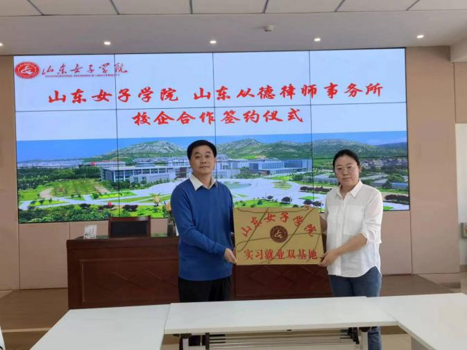 闫小红与李传生代表双方签订了《战略合作协议》、《实习就业基地协议》,杨洋与王静静共同为“山东女子学院实习就业双基地”揭牌。
