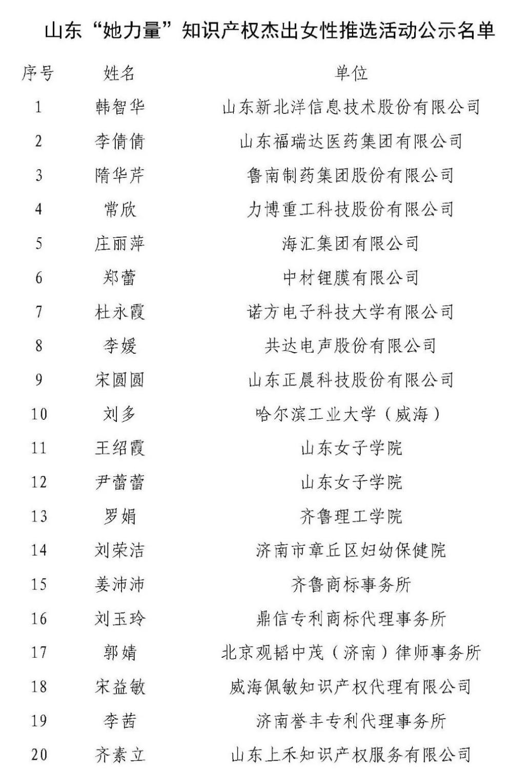 为响应2023年世界知识产权日活动的主题《女性和知识产权:加速创新创造》,赞美女性在建设更美好未来所做的开创性工作,鼓励更多女性利用知识产权加速创新创造,山东省知识产权服务业协会于近日开展了“2023年度山东‘她力量’知识产权杰出女性”推选活动。该项活动得到了众多企事业单位、高校院所、科研机构及知识产权服务机构的积极响应。经专家评审,我院王绍霞副教授、尹蕾蕾讲师入选山东“她力量”知识产权杰出女性名单。