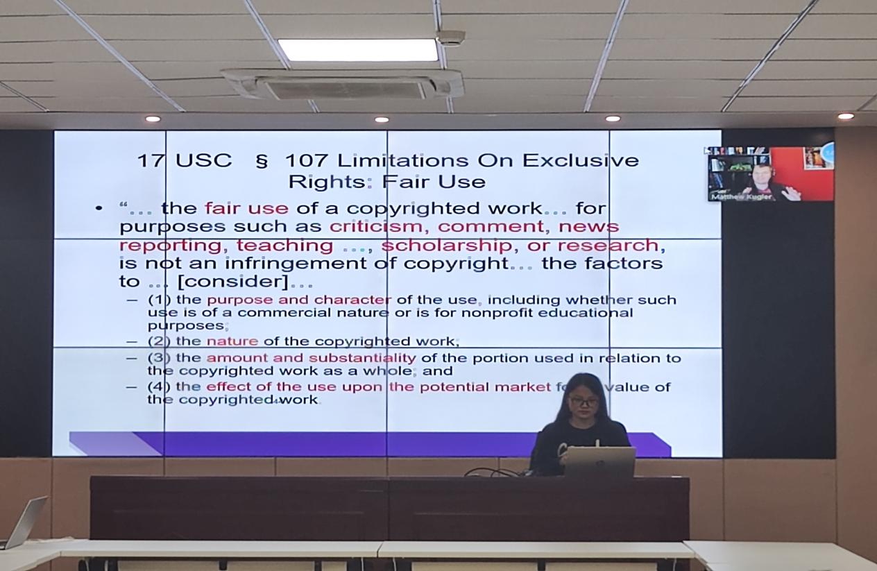 本次报告的主题为:知识产权法的基本实践认知(Basic Practical Knowledge of Intellectual Property Law),介绍了美国保护知识产权的主要法律体系(即专利法、商标法、著作权法和商业秘密法)以及这些体系背后的关于竞争行为的相关政策,旨在让学生了解知识产权法的基本实践知识,培养学生对知识产权法相关问题的分析与评估能力。会后MATTHEW B.KUGLER教授详细地回答了学生们提出的问题。