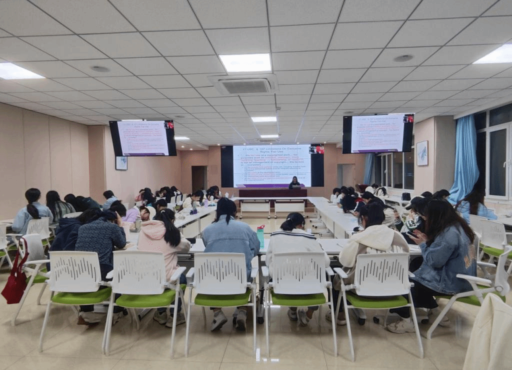 为顺应国际发展趋势,巩固学校与国外高校的国际交流平台,同时进一步加深对知识产权专业的认知,4月20日,学院组织知识产权专业学生参加了国际学术交流活动。参加本次活动的有知识产权专业近百名学生以及知识产权协会的部分干事,学院法律英语授课教师王菲到会主持。