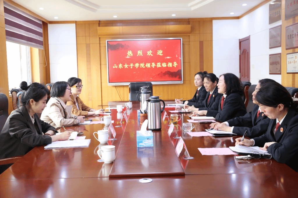 2023年4月20日,社会与法学院副院长王绍霞、知识产权教研室主任秦怡、教师石慧一行到长清区人民法院参加校院合作座谈会。参加座谈会的有长清区人民法院党组成员、副院长孟敏,机关党委副书记、工会主席王明红,民一庭庭长冯建、民二庭庭长袁海燕、副庭长赵娜。