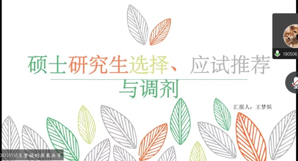 随后,学长学姐们以个人情况进行分析,从择校、资料选择、专业课以及公共课复习等各阶段备考规划、具体任务及考前准备等方面经验倾囊相授,交流自己的上岸感受,分享自己的考研经历。他们中有人分享如何做好复习计划,制订好每月甚至每日计划;有人提到择校的重要性;有人强调良好心态是成功上岸不可或缺的条件;有人推荐自己独特的公主学习法;还有人则用自己坎坷的考研经历来警醒学弟学妹们……学长学姐们从不同的角度,针对考研展开了全面的剖析。听完分享后,女性学教研室主任李桂燕老师也在云端为成功上岸的学生们送上了诚挚的祝福,并激励女性学的全体同学努力学习,不断进取。