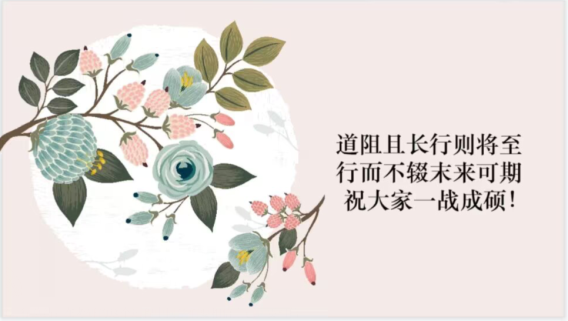 在分享会的最后,赵娜老师进行总结:在考研的这个过程中同学们要相信自己,要相信自己就是最棒的那个,相信每一分的努力都会成为一束光,照亮前行的路,你所坚持的梦想会随着时间的推移一定成为现实。