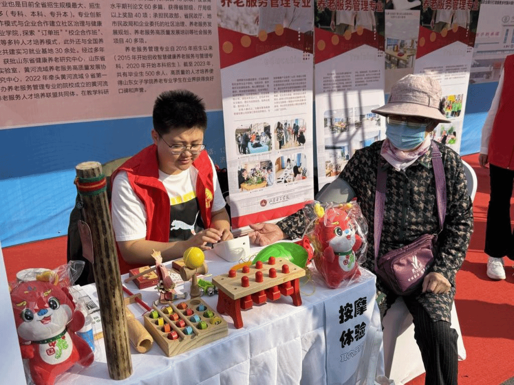 此次博览会旨在展示最新的养老产品和服务,加强政校企交流与合作,推动养老产业的创新和发展。在本次活动中,志愿者们展现了新一代青年人的精神风貌,向老年人展示了音乐疗法“稻香”,悠扬的歌声唤起了老年人对过去的美好回忆。志愿者还邀请老年人和小朋友一起体验适合老年人演奏的乐器,以及打地鼠、穿梭拉力球等乐龄游戏,锻炼老年人的动手能力和认知能力,促进老幼代际间的互动与交流。志愿者们还为老年人们开展测量血压、专业的推拿、耳穴压豆等健康活动,不仅展现志愿者们熟练的专业技能,还帮助老年人及时了解自己的健康状况。在活动中,志愿者们向老年人宣传积极应对老龄化的养老方式,通过扩大社会参与增强老年人的幸福感。