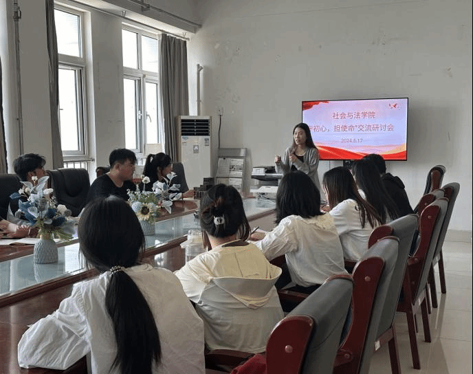 为进一步强化党员发展对象理论武装,提升政治素养,端正入党动机,社会与法学院于2024年5月17日在博雅楼503围绕“守初心,担使命”开展交流研讨会。社会与法学院学生党支部宣传委员吕雅琦及2024年上半年确定的党员发展对象参加了本次会议。