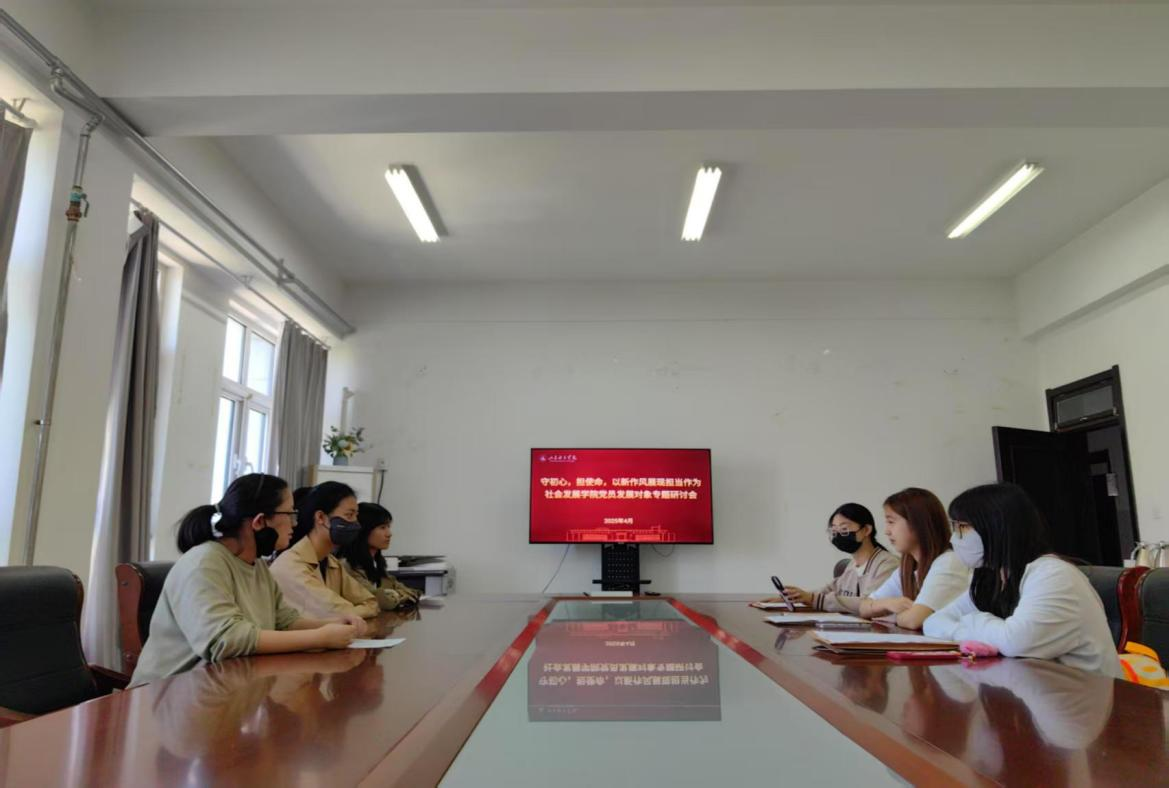 2025年4月28日上午,社会发展学院学生党支部结合深入贯彻中央八项规定精神学习教育召开“守初心,担使命,以新作风展现担当作为”党员发展对象专题研讨会,为培育新时代优秀党员、深化党风建设注入强劲动力。