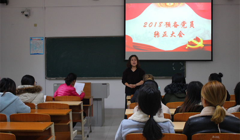 大会伊始,两名预备党员依次宣读入党志愿书,详细汇报了自己在学习、生活和工作等方面的情况,表明自己加入中国共产党的决心。随后,入党培养人对两名预备党员在预备期间的表现进行总结。党支部成员对预备党员的情况进行讨论,经无记名投票方式表决后,一致同意吸收两位预备党员为正式党员,学生党支部书记方莹宣读了该决议。会议最后,各位党员教师对两名正式党员提出要求,希望两名正式党员保持良好的风貌,立足实际工作,切实发挥党员的先锋模范作用。