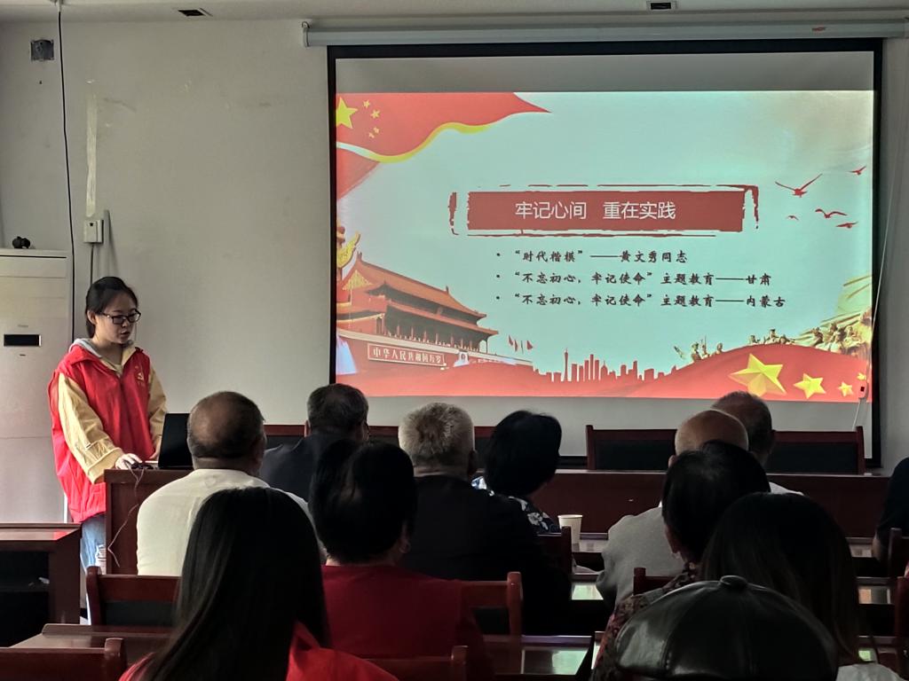 活动伊始,乐天创科社区书记带领社区的老党员们学习了习近平总书记重要讲话的内容,鼓励党员们牢记使命,听党指挥,与党保持一致。紧接着,社会与法学院的党员志愿者向老党员们讲解了主题教育的提出背景以及如何总结经验、奋力前行。老党员们积极发表自己的看法,分享自己的实践经验。随后,党员志愿者举办了“防诈骗”讲座,通过案例讲解的方式提高老人的警惕性。期间,老党员们讲述了近期社区发生的诈骗事件,表示此次讲座受益匪浅。最后,志愿者进行了义诊,关心了老人们的身体状况。