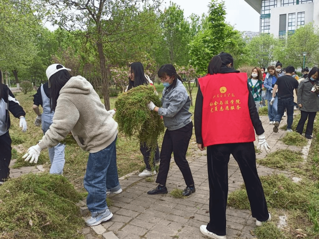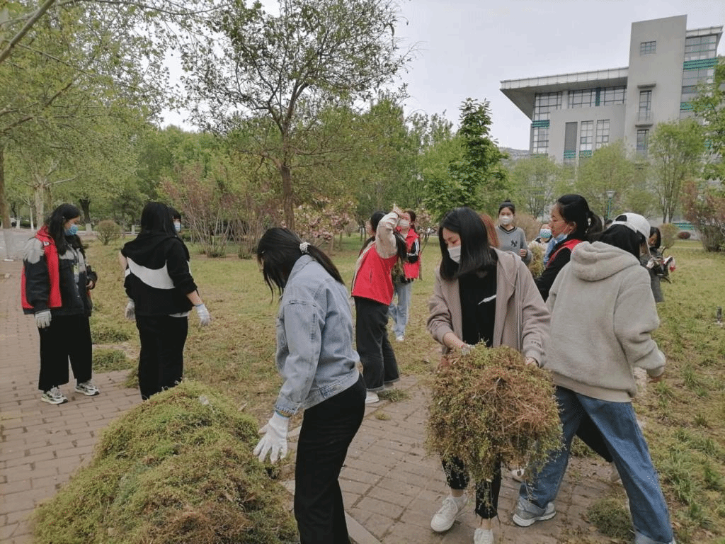 为打造优美整洁环境、构建绿色和谐校园,巩固党史学习教育成果、持续推进“我为群众办实事”,同时响应校团委“砥砺奋进守初心 青春献礼二十大”主题教育实践活动的号召, 2022年4月14日下午社会与法学院党委组织部分师生党员及入党积极分子在图书馆西侧草坪开展清除杂草、美化校园志愿服务活动。
