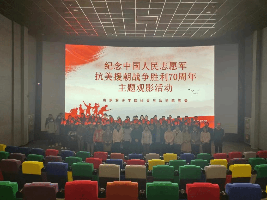2023年是中国人民志愿军抗美援朝战争胜利70周年,为进一步凝聚奋进力量,铭记光辉历史、传承红色基因,坚定不移听党话、跟党走,纪念抗美援朝胜利70周年,2023年12月7日下午,社会与法学院党委组织师生党员观看红色影片《志愿军》,开展“守初心、强信念、担使命”主题党日观影活动。