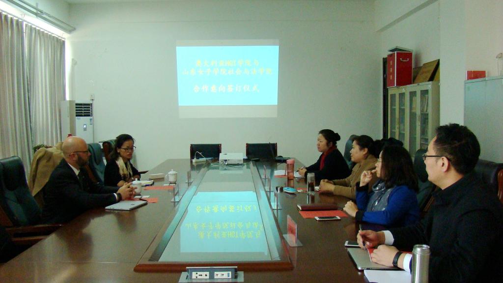 11月30日上午,澳大利亚HGT国际学院院长约翰·林迪寇特(John Liddicoat)、副院长蒋学莉(Annie Jiang)一行来到社会与法学院进行深层次交流访问,并签署了合作意向书。王蕾蕾院长和闫小红副院长在会议室接见了来访嘉宾,老年服务与管理教研室主任金莉和教师代表代树平参加了座谈。