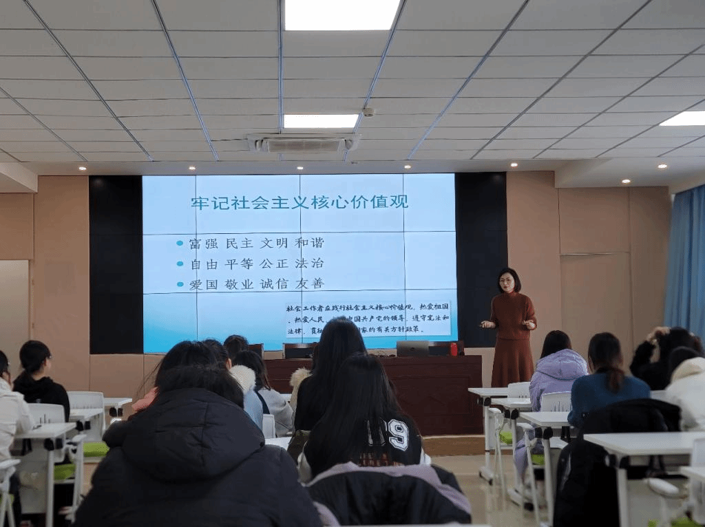 活动伊始,马烨教授通过详细讲述了社会工作专业价值与伦理的有关知识,加深了学生们对社会工作专业的认识。并通过具体的案例,阐释了社会工作专业价值的实践方式及其意义,并希望学生们不断提高社会工作专业能力。最后,主讲人马烨教授与学生们进行交流互动,并对大家提出的疑惑进行解答。