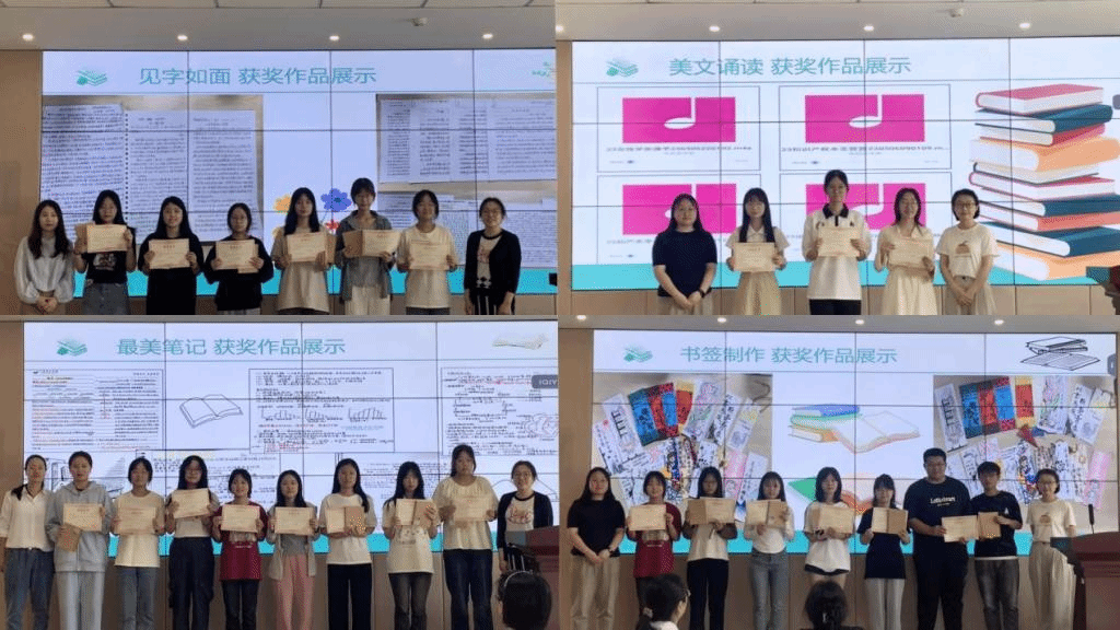 大会首先对读书月系列活动中表现优异的同学进行表彰,在热烈的掌声中,与会老师分别为获奖学生颁发证书及奖品。