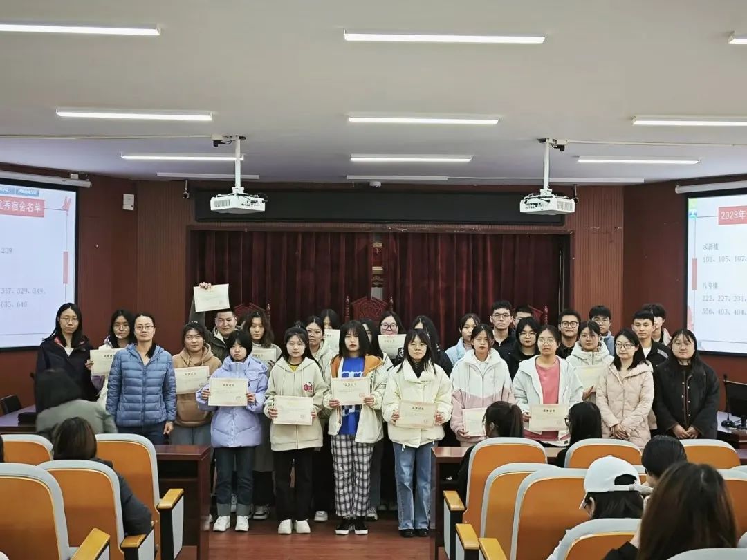 为了激励同学们共同打造一个干净整洁、和谐团结的宿舍环境,营造出更好的社交氛围,增强宿舍成员之间的相互合作与帮助。让我们的生活与学习更加舒适和丰富,让我们的校园更加美好和温馨。社会与法学院自律会于11月10日召开召开优秀宿舍表彰大会。社会与法学院党委副书记吴玉霞,辅导员吕雅琦、于苗、管蕊、郭雯、贾心红出席本次大会。