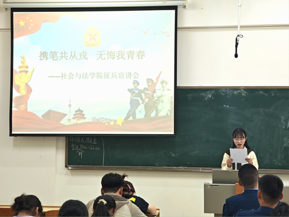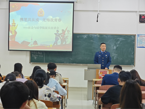 此次宣讲会的成功举办不仅让社法学子们对征兵政策有了更加全面和深入的了解,也激发了社法学子们携笔从戎、参军报国的热情,为我院征兵工作的具体开展打下坚实基础。