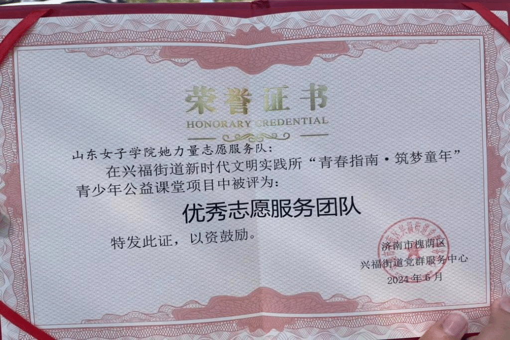 山东女子学院她力量志愿服务队从志愿队介绍、工作概况、成果展示以及未来展望等四个部分进行志愿汇报,在本次汇报中向家长、领导展示了日常志愿工作细节。志愿队坚持以爱为桥,关注儿童个性化需求,将本专业对儿童妇女的知识与现实实际问题相结合,设计一系列活动,在未来也将继续坚持“奉献、博爱、关爱”的原则,特别是为儿童提供高质量、高品质的专业服务;孩子们在台上勇敢发言,表达这半年来在课程中的学习收获和课程感受,表示在课程中学到了与人交往的技巧和展示自我的信心,获得台下热烈鼓掌和一致称赞;在本次活动中,还与其他学校志愿者队进行交流沟通,互相学习,汲取其他志愿者队的经验和方法。最后,孩子们表演了精彩的节目,山东女子学院她力量志愿服务队被评为“最佳志愿服务者团队”,为本次活动画上完美句号。