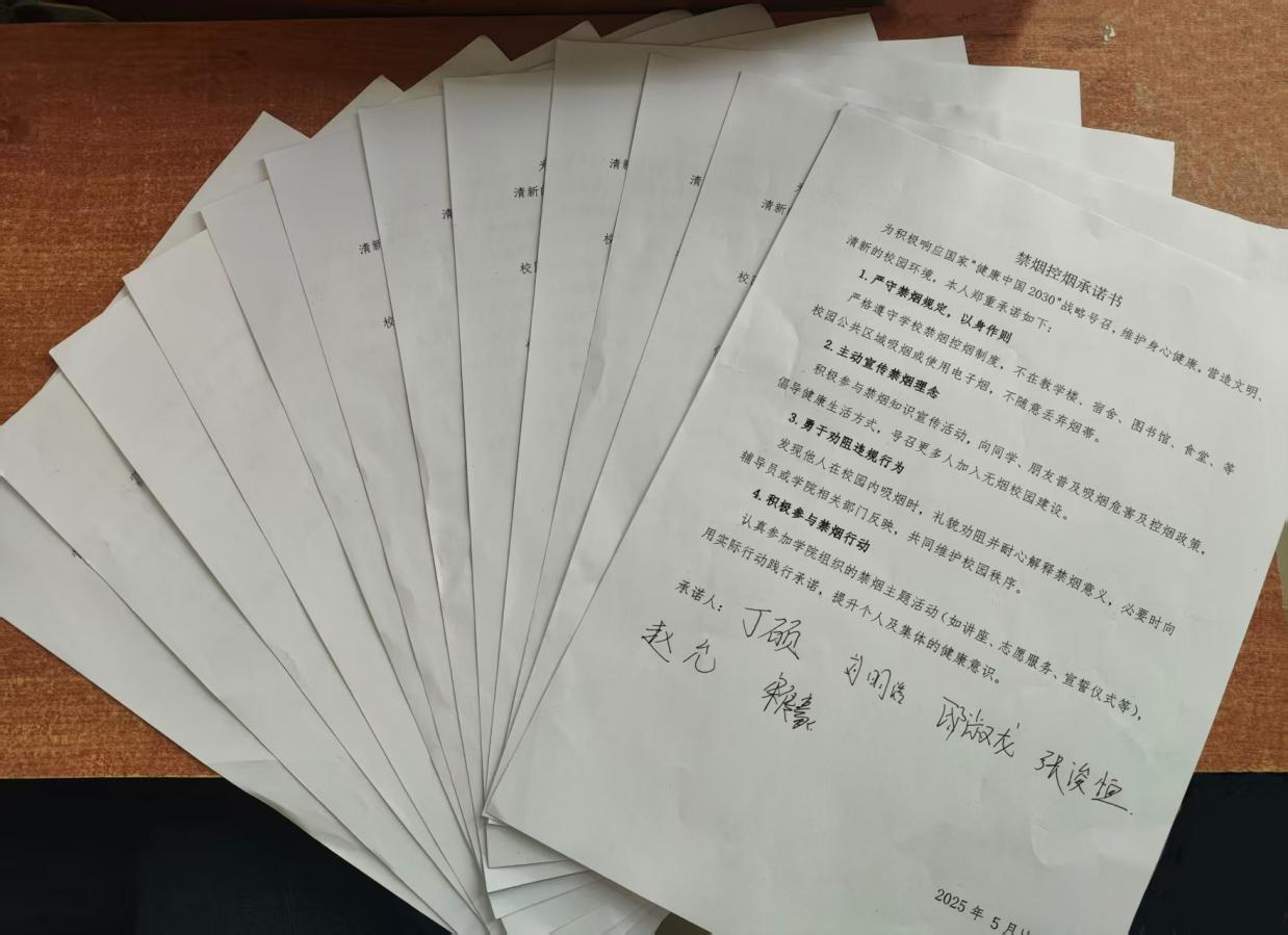 同学们纷纷表示,通过交流认识到吸烟对自身健康和周围同学健康的危害,将主动劝阻吸烟行为,共同营造清新、安全的宿舍氛围。社会发展学院全体学生共同签署《禁烟控烟承诺书》,郑重承诺自觉遵守校园禁烟规定,主动参与控烟宣传与监督工作。