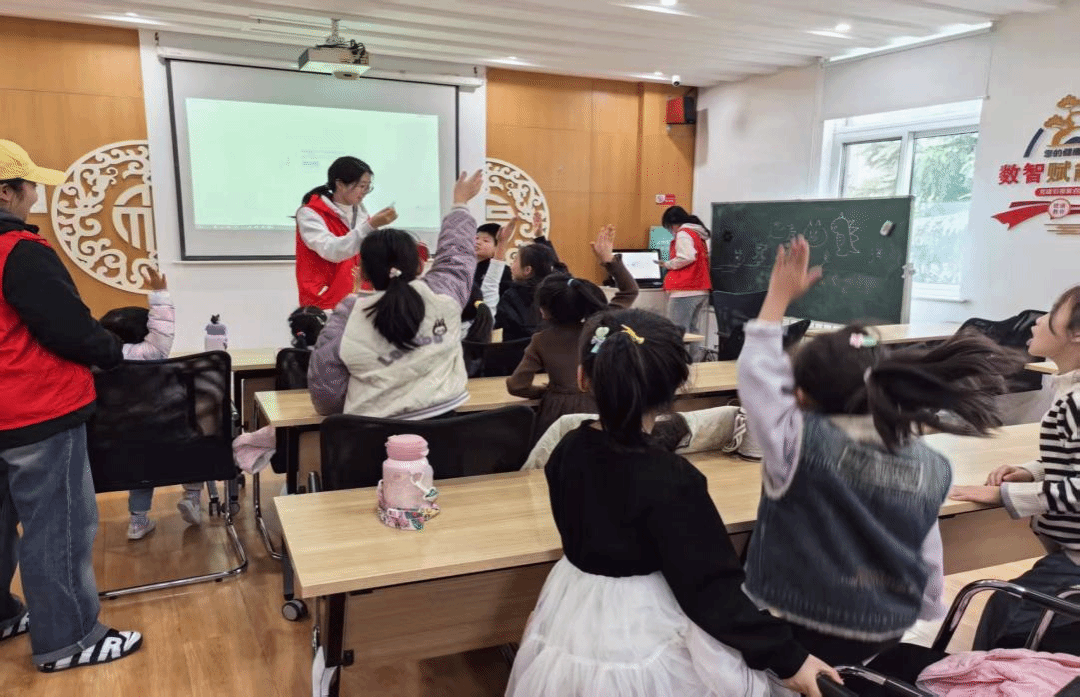 短暂的休息后,活动进入“安全知识小课堂”环节。志愿者们深知安全教育对儿童成长的重要性,他们结合日常生活中可能遇到的风险,重点讲解了交通安全和保护自己的常识。志愿者们利用生动的PPT动画,演示了如何正确过马路、认识交通信号灯,以及“一停二看三通过”的基本原则。以及遇到危险时怎么保护自己,怎么寻求帮助等。讲解过程中,志愿者们还不时提问,与孩子们互动,确保安全理念真正入脑入心。