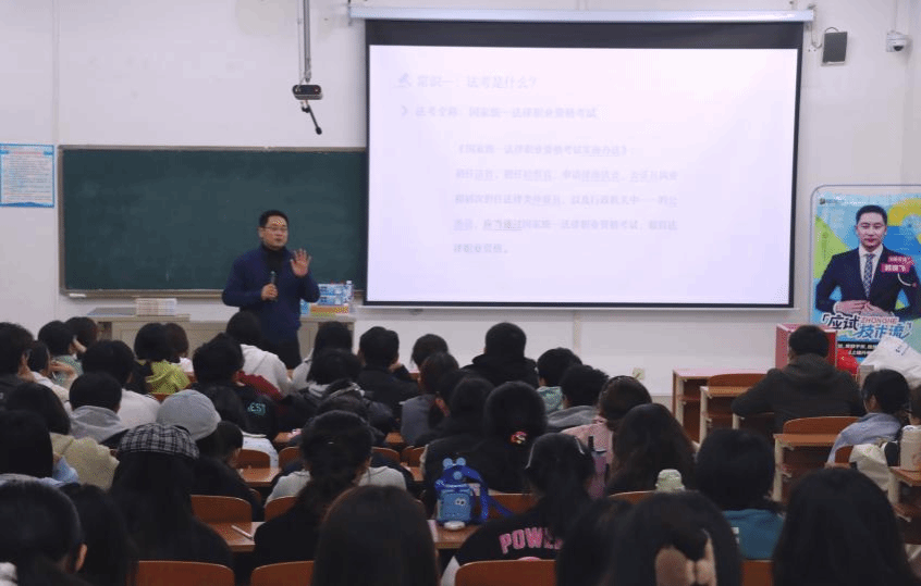 讲座伊始,郭晓飞围绕法考的政策背景、最新大纲、科目构成及复习方法等方面,为同学们进行了系统梳理与讲解。他凭借扎实的学术功底和丰富的备考指导经验,带领大家逐步掌握法考的整体框架与最新动态,并鼓励同学们尽早确立目标、科学规划备考,号召大家将个人成长与国家法治建设需要相结合,以坚定意志投入学习。