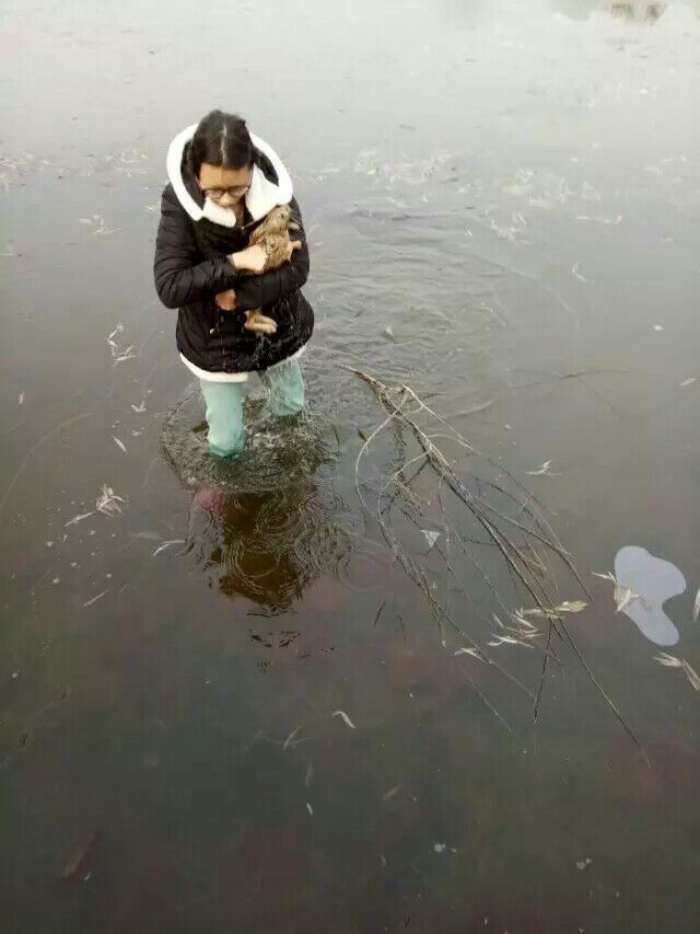 12月25日上午,社会与法学院2014级社会工作本科一班的贾同凤同学为救一只不慎落水的野兔踏入结冰的湖水中,被称为“最美女院人”。