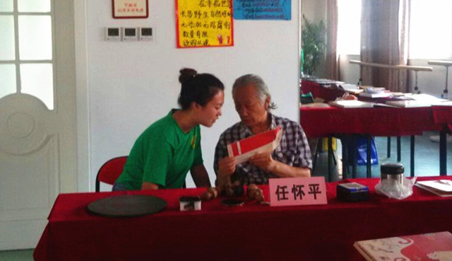 上午志愿者积极参与了太极授课活动,顺利展开了第四期养生保健工作坊活动。志愿者为老人们尽心表演了八段锦并认真教授老人们完整的动作要领。老人们谦虚好学,对志愿者们的表演更是表现出了极大的学习兴趣。活动结束后,老人们对志愿者的耐心教学表示了真诚的感谢。在此之后,志愿者在三楼多功能厅协助中心工作人员组织邮票展览活动。活动期间,著名邮品设计家、集邮家任怀平亲临现场参加签售活动,向日葵志愿服务二队队长热情地与任怀平教授进行沟通交流,并对向日葵志愿服务队的团队状况和服务内容作了详细的介绍。任教授专门为向日葵志愿服务队题字——“爱之大爱献社会”,对志愿者们开展的活动表示了认可并鼓励志愿者们继续发挥无私奉献精神。