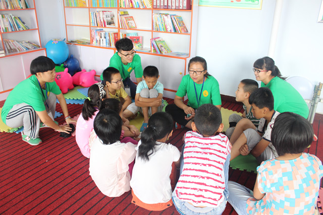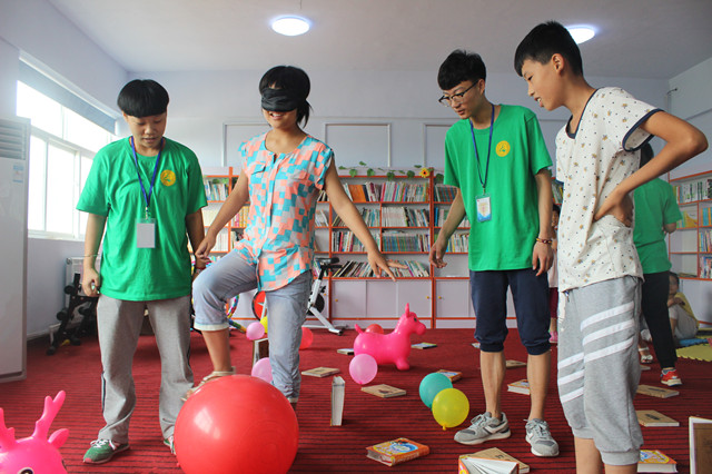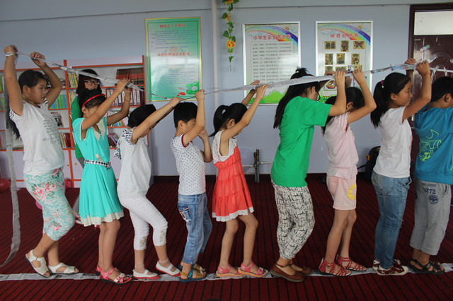 一大早临沭尚学堂的孩子们就来到了学堂活动室,眼神充满了兴奋和期待。针对城镇化迅猛发展,外出务工人员增加,当地孩子们人际交往能力和沟通技巧存在不同程度的缺失,“向日葵”志愿服务队充分发挥社工专业特色制定了一系列以活动来促进孩子们之间沟通的营会活动,包括“传话游戏”、“跨越雷区”、“心有千千结”等。经过一天的活动之后,孩子们能够做到认真倾听每个人的想法,在交流沟通这一方面有了显而易见的进步。而在每个活动结束后,“向日葵”队员也鼓励孩子们分享自己在活动过程中的体会,孩子们也学会了说出自己的心声,通过分享达到更进一步深化感情,促进沟通的目的。