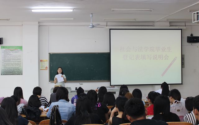 5月25日上午,社会与法学院在合班楼108成功举办毕业生登记表填写说明会。本次会议由学院辅导员主持进行,学院全体毕业生参加了本次会议。