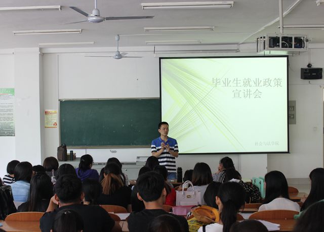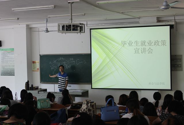 5月25日上午,社会与法学院在合班楼108成功开展毕业生就业政策宣讲会。学院辅导员和全体毕业生参加了本次宣讲会。