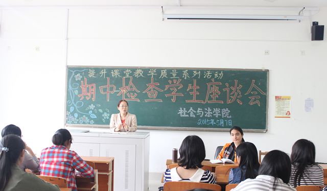 5月7日下午,社会与法学院在普教楼306举办提升课堂教学质量系列活动——期中检查学生座谈会,社法学院两位老师以及各班学生代表参加本次座谈会。