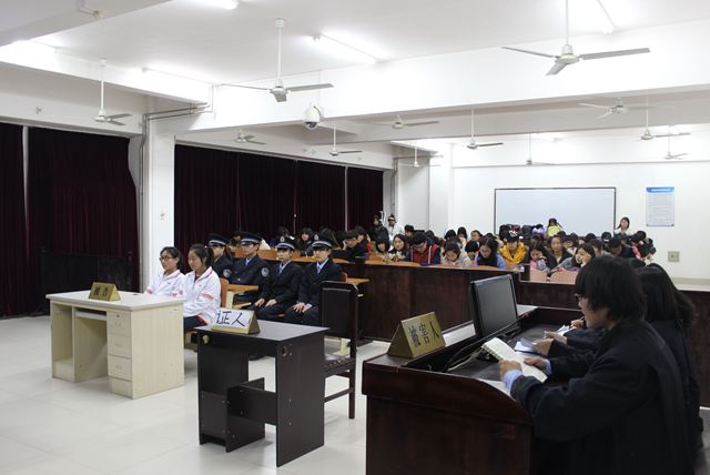 12月11晚,社会与法学院在实验楼503举行“弘扬法治精神,增强法制观念”模拟法庭活动。这是我校“法制宣传月”活动之一。社会与法学院及外国语学院的学生代表参加了本次活动。