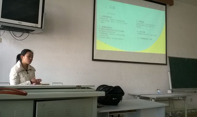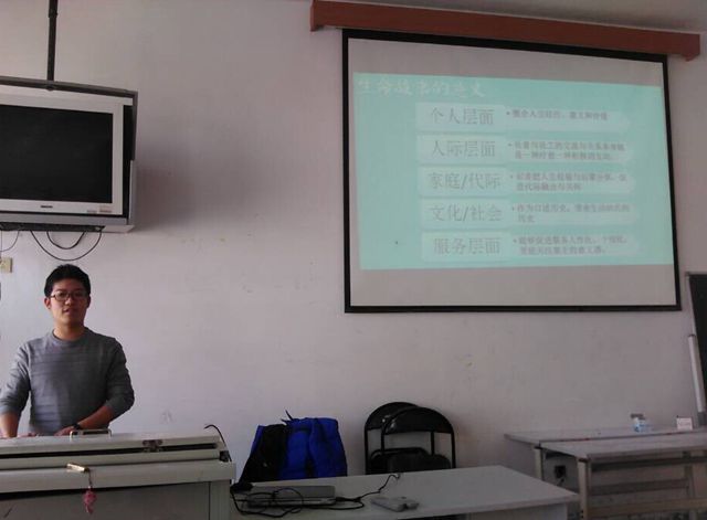 在热烈的掌声和殷切的期待中,学生代表先就社会工作理论向同学们介绍了在老年社会工作这一方面需注意的问题和工作意义。强调了同学们需要了解到许多老年人精神压抑、生活黯淡、情绪易波动的特点,运用叙事治疗的手法和同理、共情、尊重等理念,为老人撰写生命故事,重构人生价值,使老人活在当下,面向未来。接着,学生代表向大家详细介绍了生命故事的一般流程,包括制定访谈大纲、正式访谈、翻录、整理、撰写和校对,并讲述了假期在淄博市社会福利院进行社会工作实务的过程,和大家分享了志愿者感言,激起了在座同学的共鸣。交流互动环节中,山东理工大学学生积极提问,学生代表热情解答,生命故事经验分享会在和谐的互动中圆满结束。