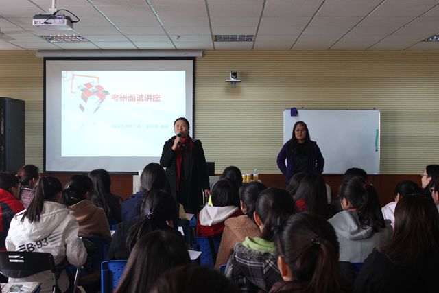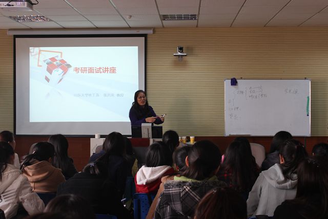 本次讲座围绕“如何应对考研面试”主题展开。张洪英教授首先用简洁精炼的语言介绍了考研面试的大致情况,阐述了面试的重要性和考察意义,指出面试过程中容易遇到的问题及当今学生参加面试时普遍存在的不足之处。接着,张洪英教授分别针对“如何准备复试”、“怎样克服紧张情绪”、“怎样在最短的时间里发挥出应有的水平”等问题作了详细的分析阐释。并从专业教师的角度向学生提出了自己宝贵的意见和建议,鼓励学生放平心态,积极自信的应对即将到来的复试。最后的互动环节,张洪英教授对学生提出的问题逐一进行了解答,受到了学生的热烈欢迎。