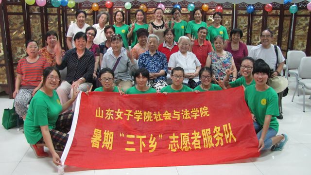 7月26日下午,社会与法学院“向日葵志愿者服务队·爱夕队”联合济南德福养老服务社共同举办“消夏老青联欢会”,联欢会为该队暑期“三下乡”社会实践活动画下了圆满的句号。