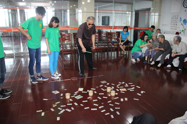 “向日葵志愿服务队”运用社会工作的专业技巧与方法,精心策划准备了一系列适合老年人的活动。该志愿服务队注重老人的生命回顾与关怀,从自身能力方面赋权老人,运用优势视角鼓励老人在疾病限制下坚强乐观地生活,帮助老人挖掘自身优势、实现梦想,达到陪伴、倾听、支持的目的。“笑口常开”和“大西瓜小西瓜”的游戏很好的活跃了现场气氛,集中了现场老人的注意力,锻炼了老人的反应能力,同时传递给老人积极乐观的生活态度;老人们套中了怀旧的小物件,通过“套圈”的游戏缅怀起曾经的记忆,兴起时,纷纷唱起了旧时的歌谣;活动中,该志愿服务队为小组成员准备了白纸,请老人们绘画出自己想画的任何东西和场景,并畅谈出自己的感想,老人们兴奋的拿着画纸,向大家展示了自己宝贵的回忆。