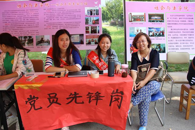 “党员先锋岗”设在社会与法学院迎新工作地点,吸引了众多新生和家长的关注。不断有学生家长上前询问报到手续办理地点以及生活和学习上的问题,学生党员给予热情解答,并主动告知新生入学手续如何办理,帮助新生解决实际问题,赢得了学生及家长的赞扬。另外,学生党员在新生报到期间,连续两天轮流深入宿舍主动关心慰问新生,积极解答新生生活和学习上的疑问,使新生了解学院基本情况,尽快适应大学新生活。
